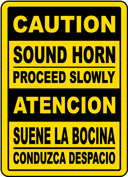 Bilingual Caution Sound Horn Proceed Slowly Sign