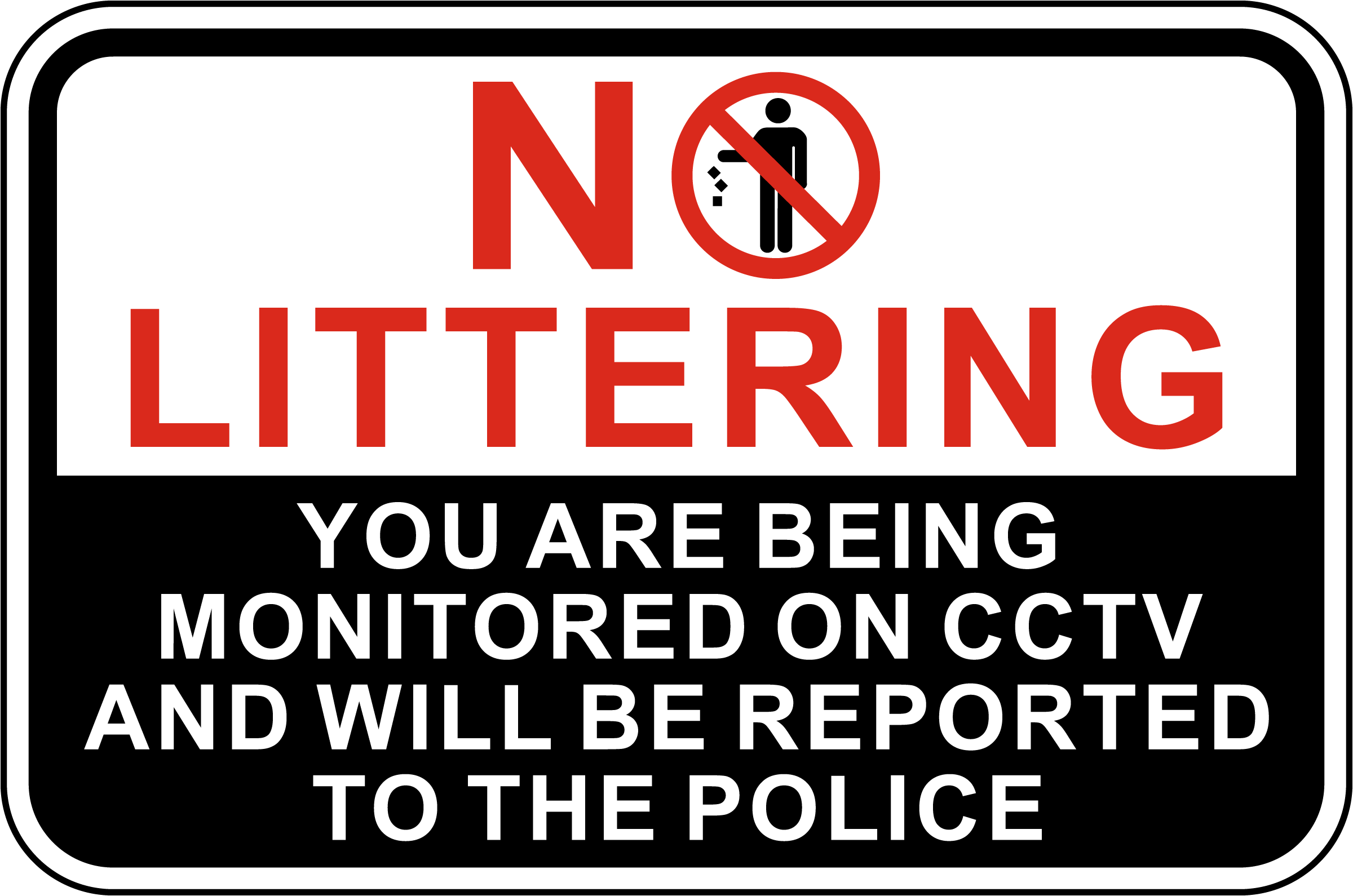 Ensure compliance with our Monitored On CCTV No Littering Sign. This sign informs everyone that the area is under surveillance, deterring littering and promoting cleanliness. By highlighting the presence of CCTV monitoring, you discourage irresponsible behavior and help maintain a tidy environment.