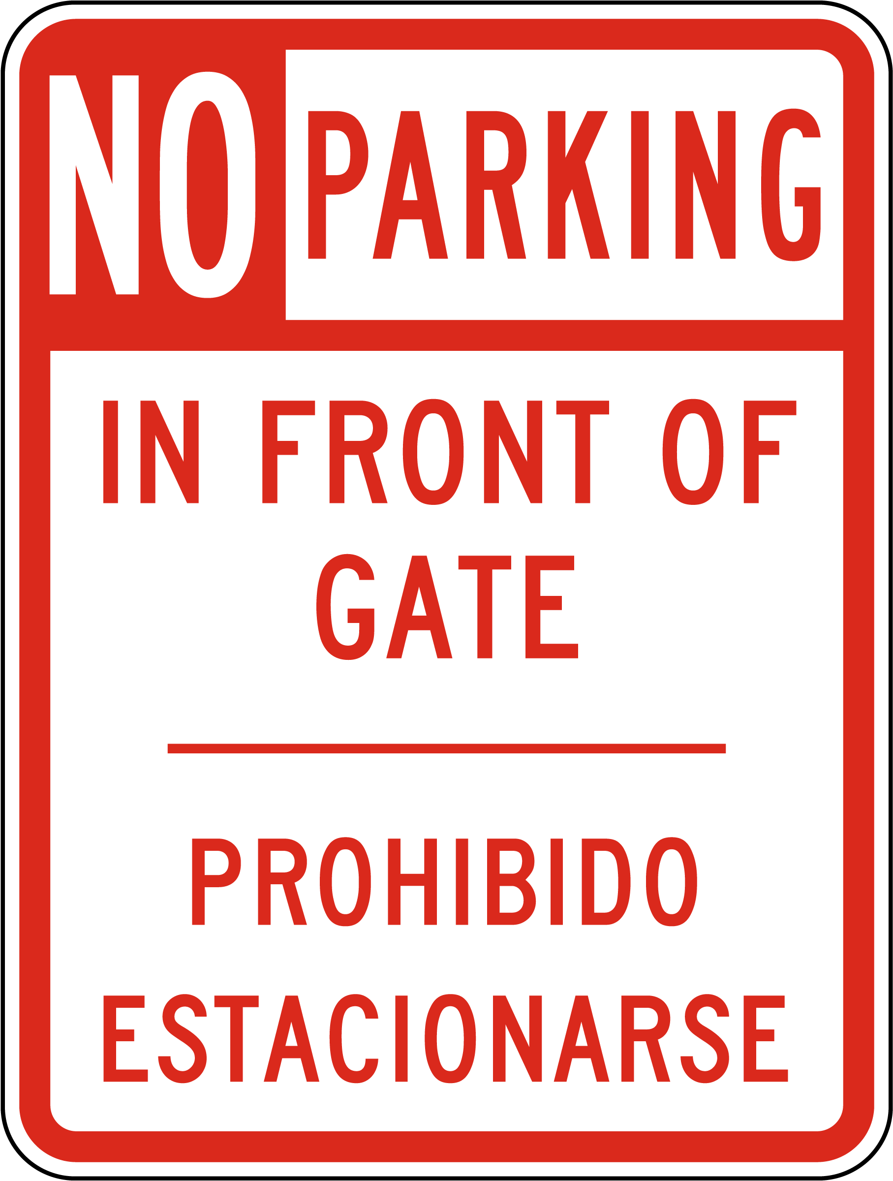 Our No Parking In Front Of Gate Bilingual Sign informs drivers in both English and Spanish that parking in front of the gate is prohibited. Constructed from premium materials, this sign provides excellent durability and visibility, ensuring compliance in diverse communities.
