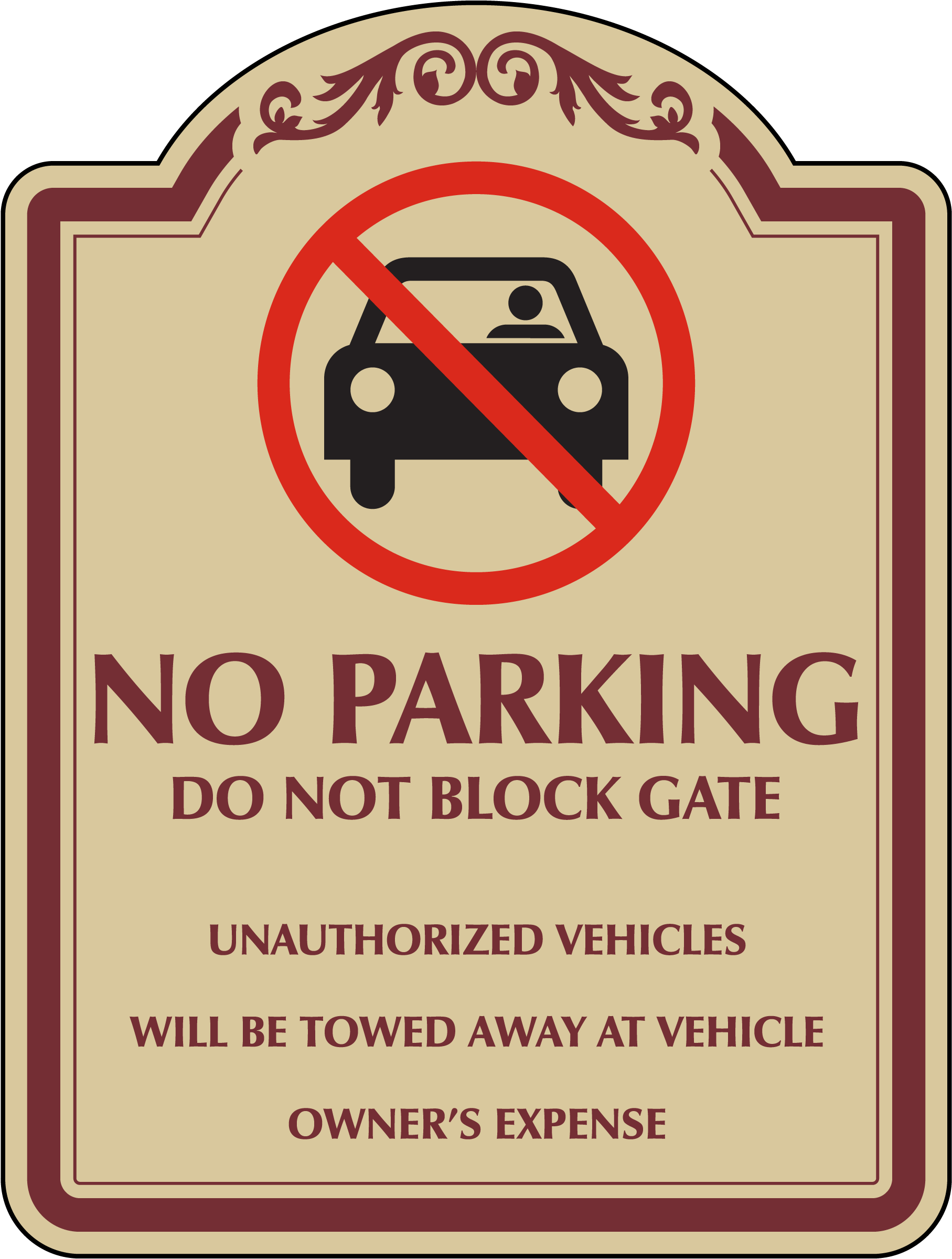 Our Decorative No Parking Unauthorized Vehicles Will Be Towed Sign serves as both a practical notice and a decorative addition to your property. Constructed from premium materials, this durable sign effectively warns against unauthorized parking and enhances the aesthetic appeal of your entrance.