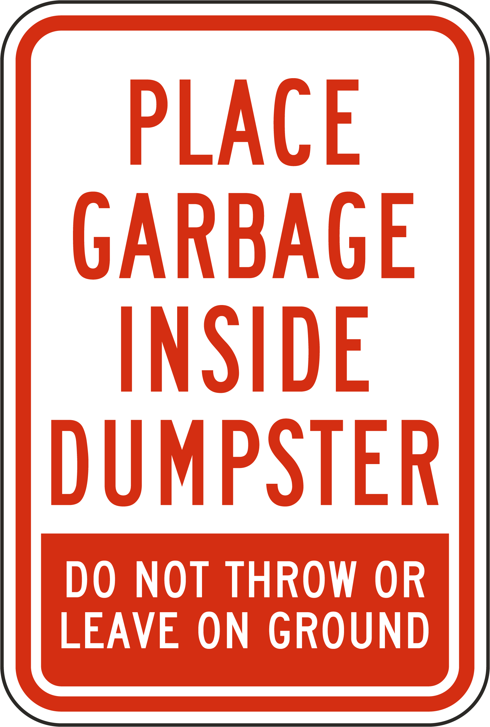 Our Place Garbage Inside Dumpster Sign serves as a simple yet effective reminder to properly dispose of trash inside the dumpster. Built with durability in mind, this sign withstands harsh weather and heavy use, ensuring compliance over time.