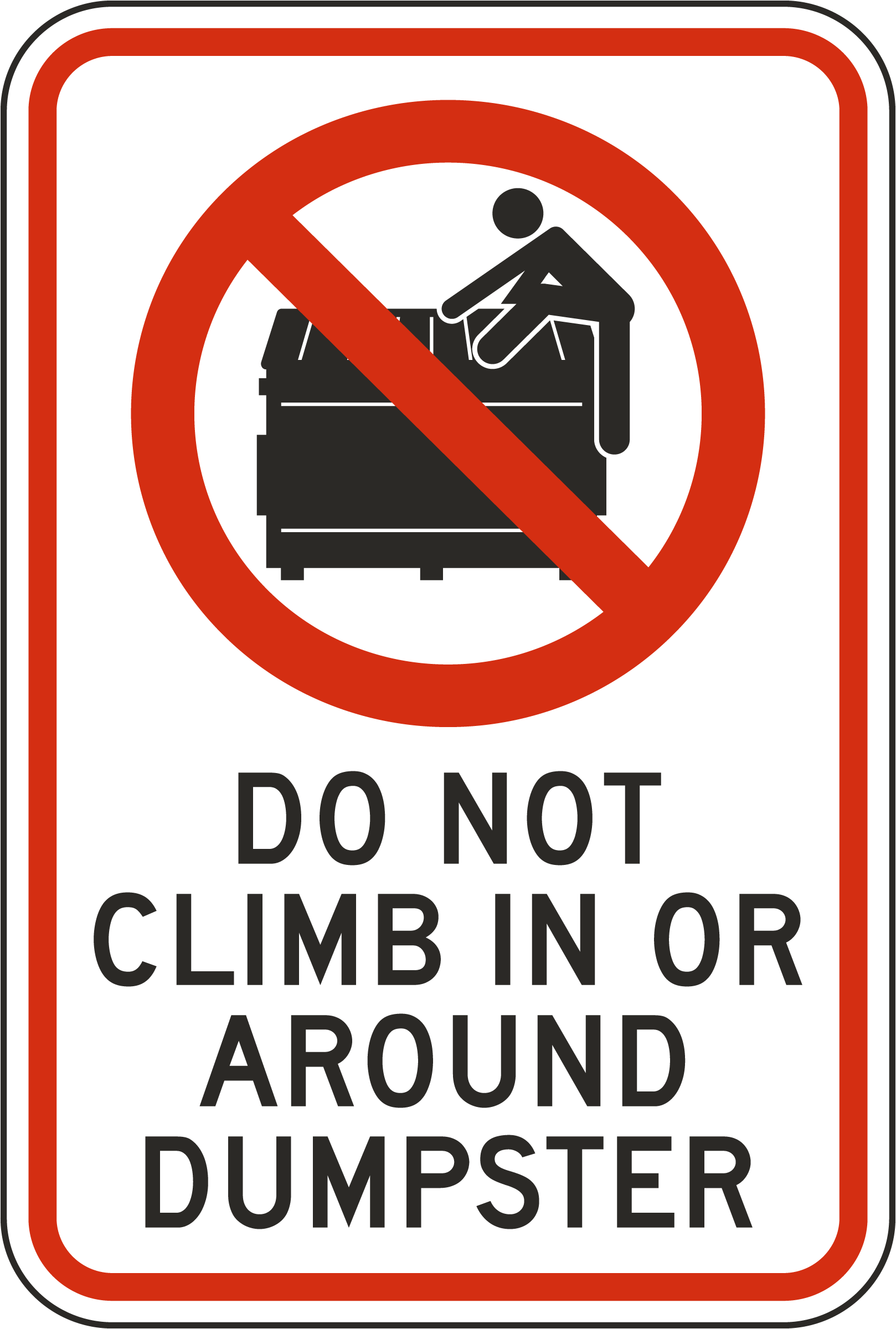 Our Do Not Climb In Or Around Dumpster Sign serves as a safety warning to prevent dangerous activities in or near dumpsters. Built with durability and visibility in mind, this sign is designed to remain intact and clear, even in harsh outdoor conditions.
