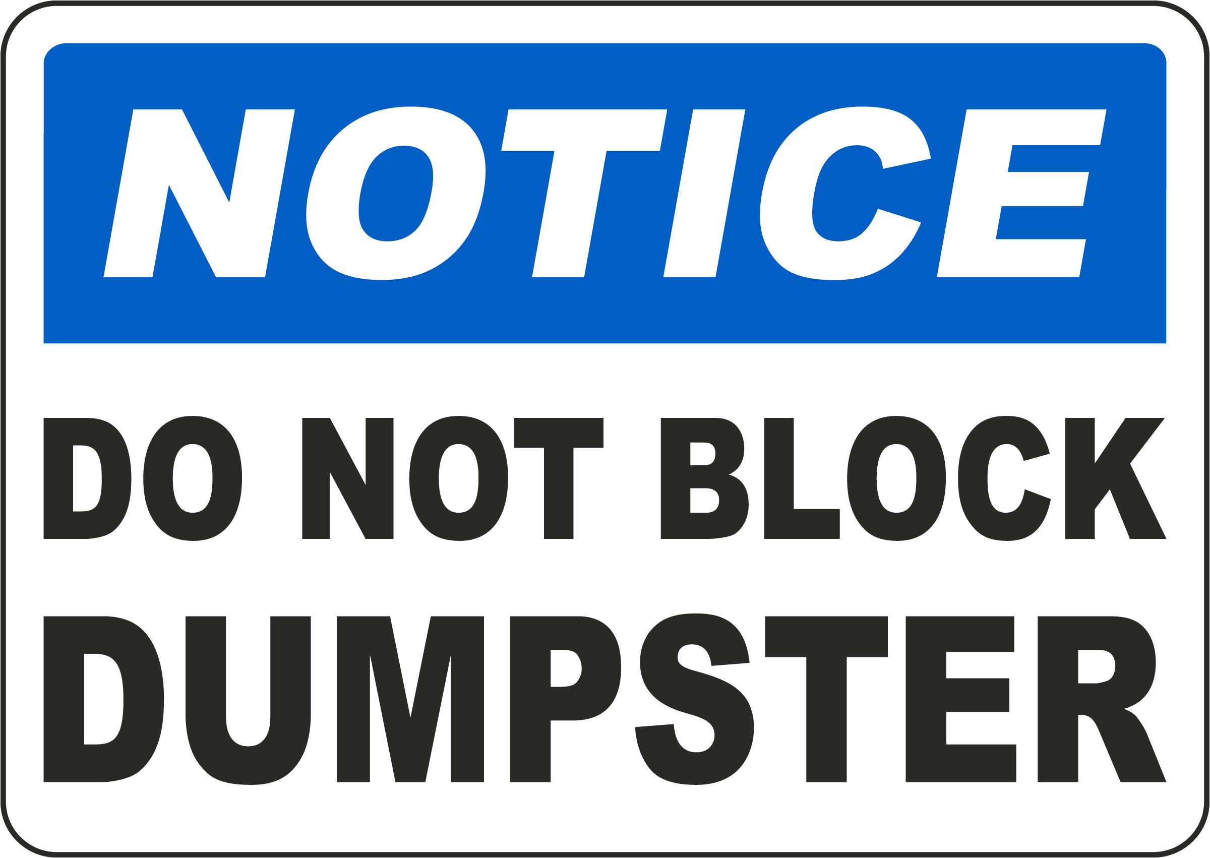 Our Notice Do Not Block Dumpster Sign serves as a formal reminder to keep the area surrounding the dumpster accessible. Constructed from long-lasting, weather-resistant materials, this sign ensures that your message remains visible in any environment.
