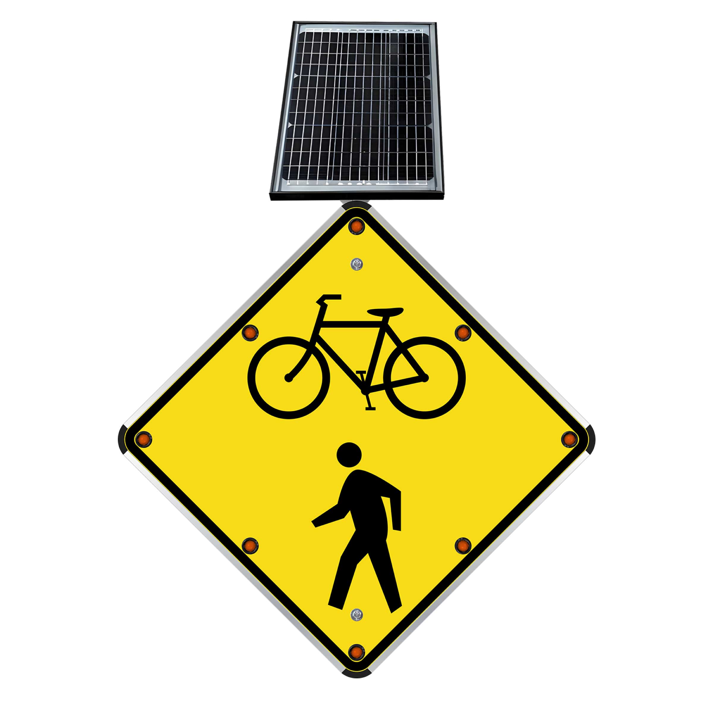 Our LED Solar Bicycle Trail Crossing Sign is designed to warn drivers of upcoming bicycle trails, enhancing safety at crossing points. With bright LED illumination for maximum visibility, this sign is built from durable materials to withstand the elements and ensure long-lasting use.