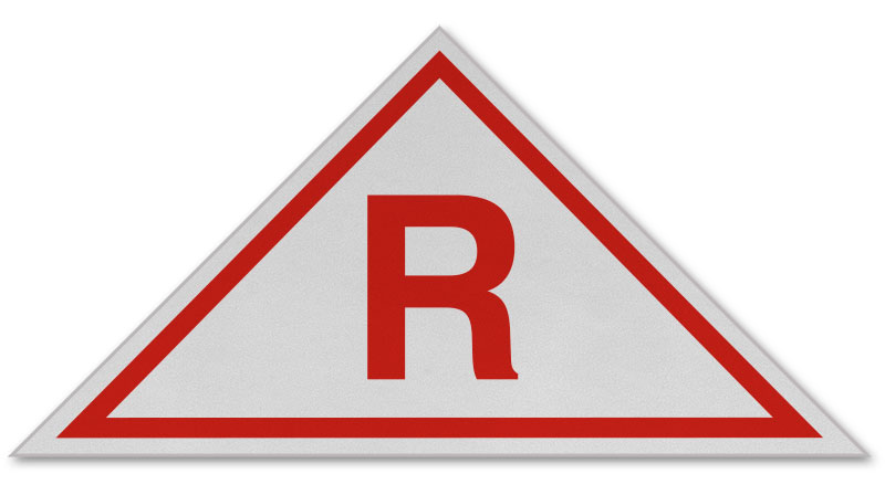 “The emblem shall be of a bright and reflective color, or made of reflective material. The shape of the emblem shall be an isosceles triangle and the size shall be 12 inches horizontally by 6 inches vertically. The following letters, of a size and color to make them conspicuous, shall be printed on the emblem, as shown in diagram below.”