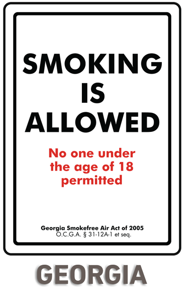 Georgia Smoking Is Allowed No One Under The Age Of 18 Permitted Georgia Smokefree Air Act Of 2005 O.C.G.A. 31-12A-1 Et Seq.