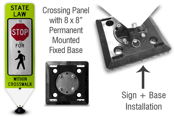 State Law Yield/Stop for Pedestrians Within Crosswalk Panels meet MUTCD Section 2B.12 In-Street Pedestrian Crossing Signs (R1-6, R1-6a)
