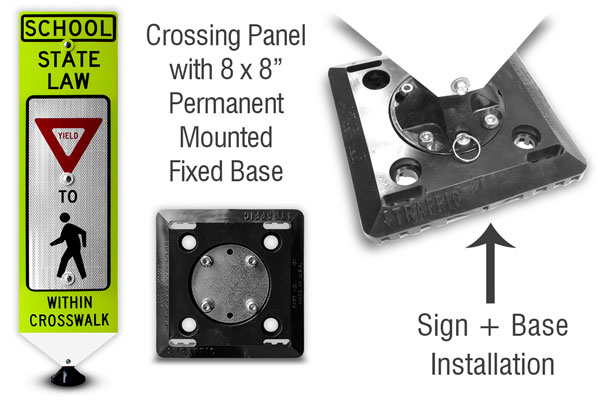 State Law Yield/Stop for Pedestrians Within Crosswalk Panels meet MUTCD Section 2B.12 In-Street Pedestrian Crossing Signs (R1-6, R1-6a)
